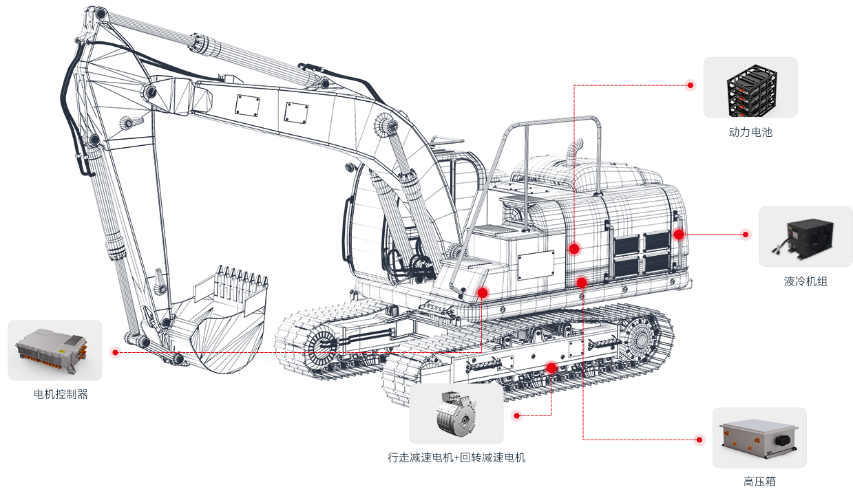 动力电池 电机控制器 逆变器 行走减速电机+回转减速电机